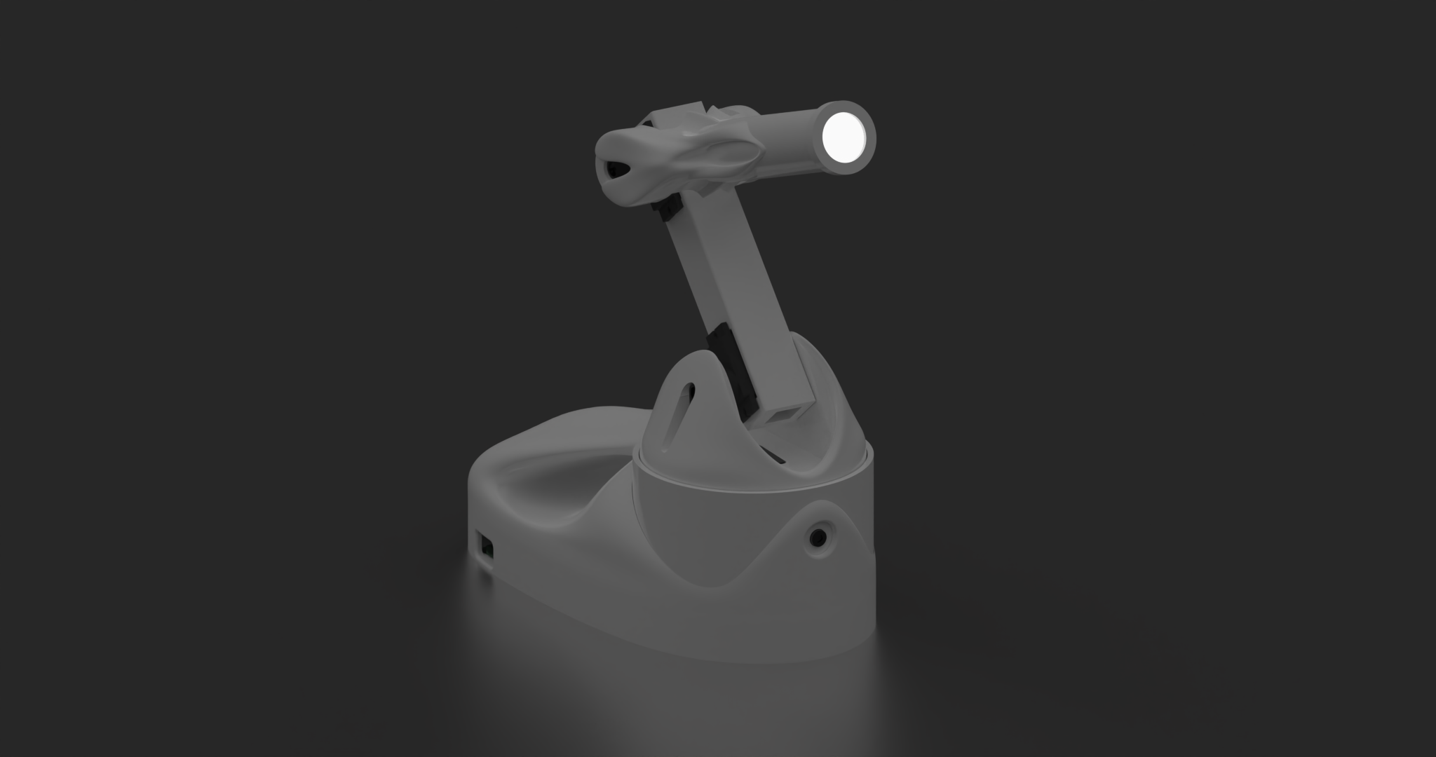 I trained my robot lamp to recognize and object detect a pen cap I designed to solve the problem of shadows being casted from my hand on my working space while doing fine arts. The robot has an AI camera and follows the pen cap around.