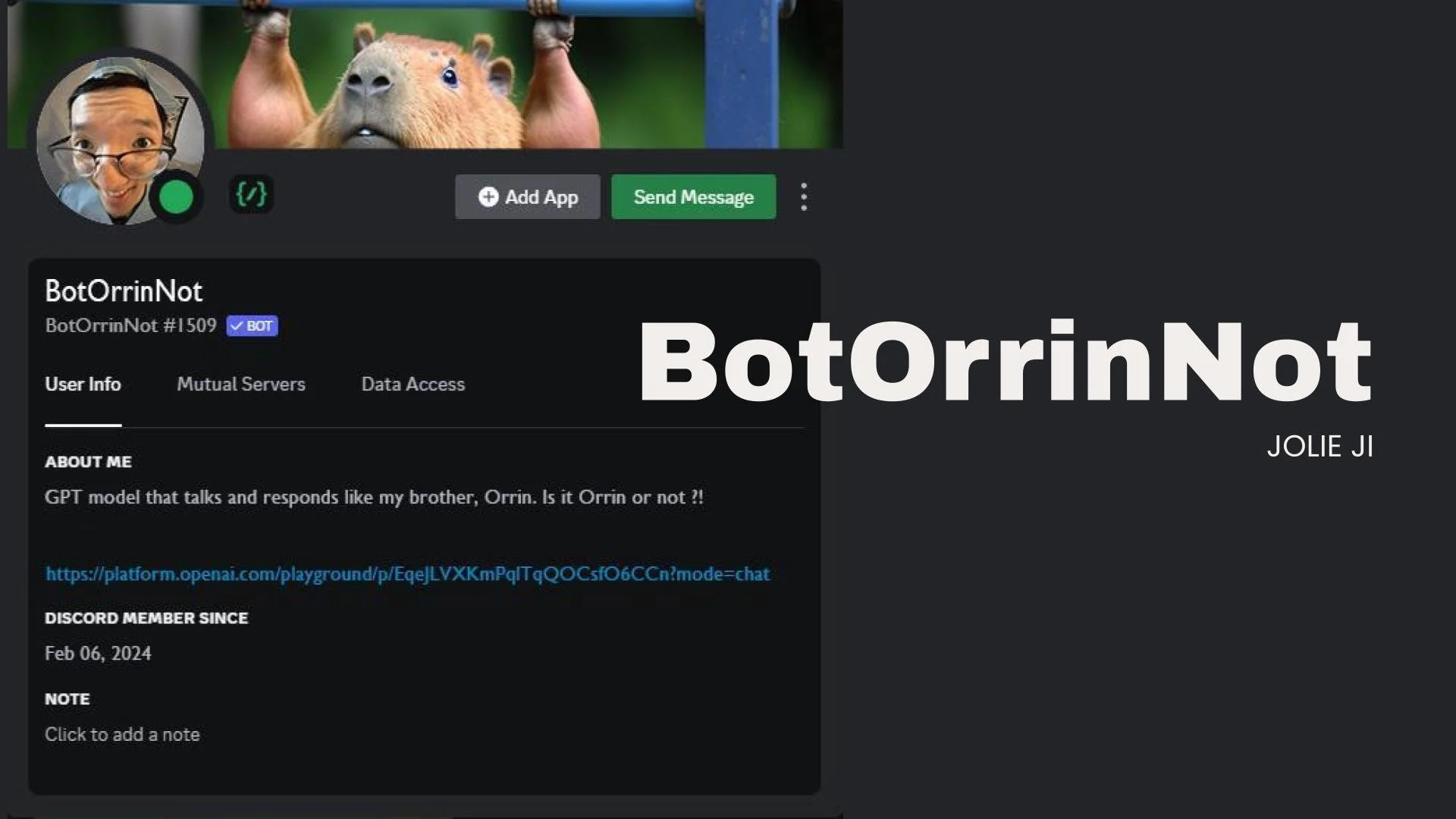 I made a GPT 3.5 trained bot that talks and responds like my brother. Trained with Python and GPT-3.5-Turbo