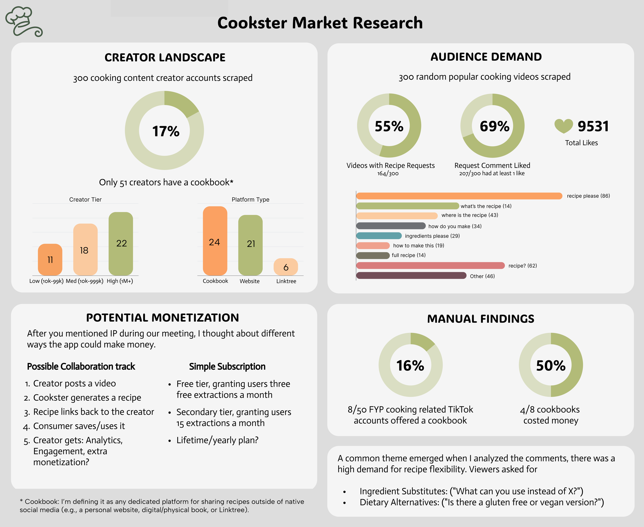 RESEARCH: To better understand whether this was a real problem worth solving, we looked at both the creator landscape and audience demand in the cooking content space.