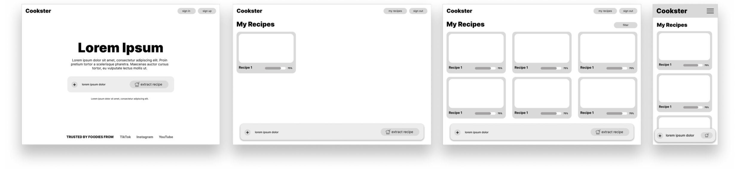 Cookster is a recipe extraction tool that helps people turn short-form cooking videos into structured, easy-to-follow recipes. We are designing the product end-to-end, from research and problem definition to ideation and early interface design. The current app is still in progress, and so far we have developed the initial research direction, low-fidelity prototypes for the core experience, and started building the product.